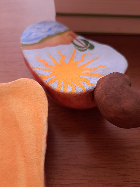 Escultura em cerâmica (argila marfim) e esmalte de alta temperatura, tinta guache
